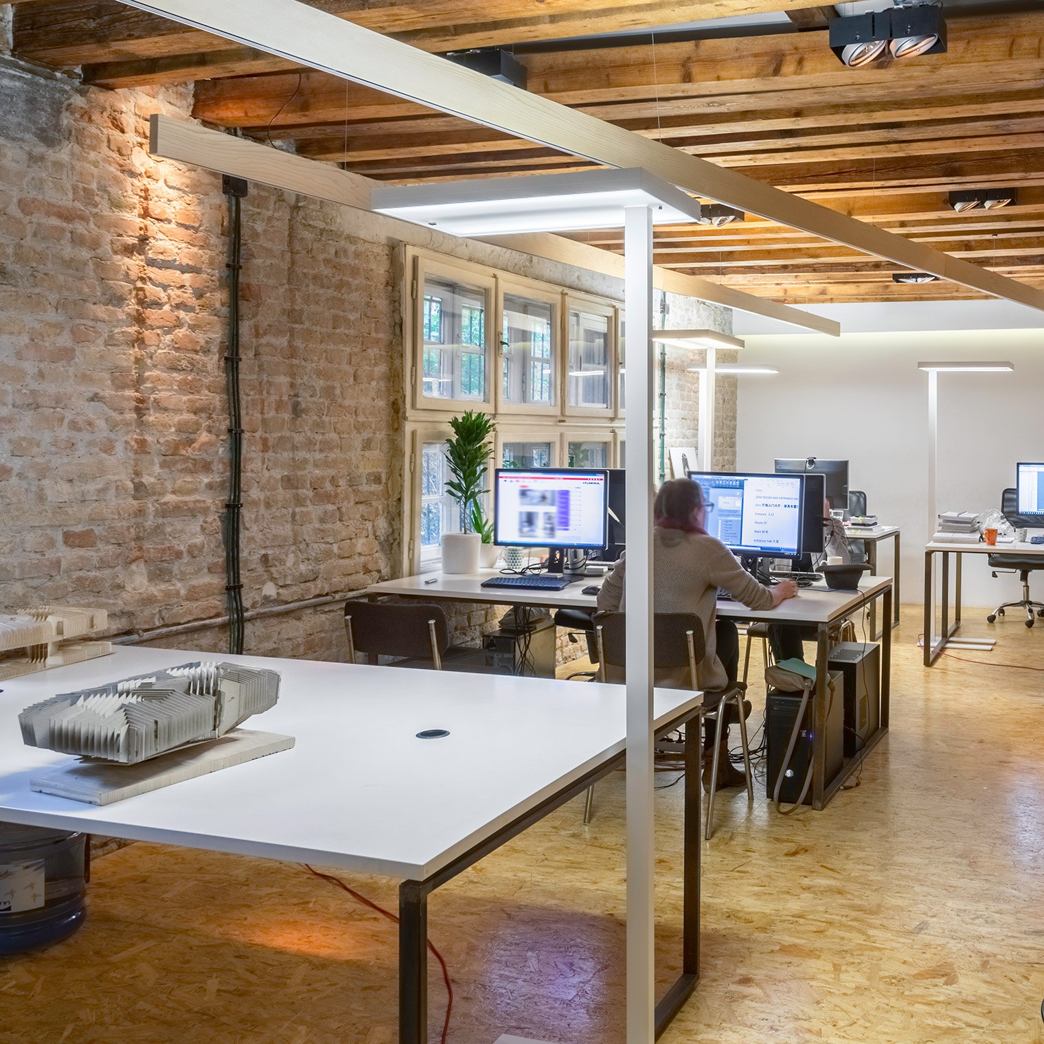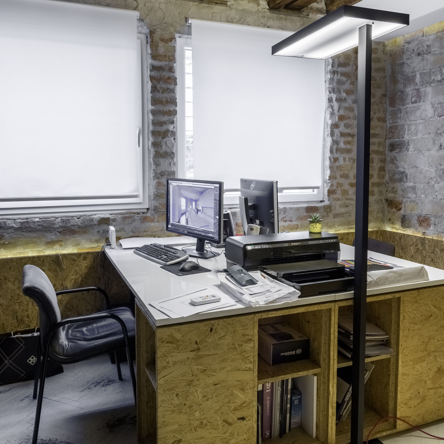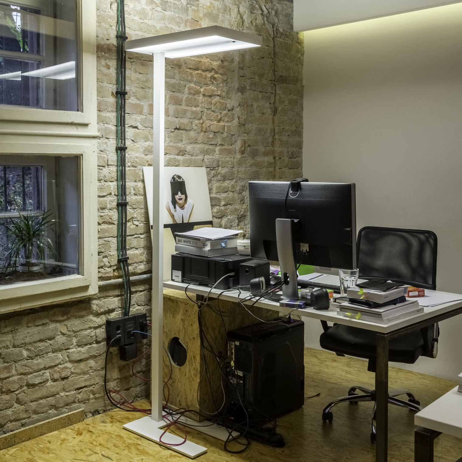GENERAL Free-standing luminaire for direct and indirect illumination of workspaces. The indirect component provides general illumination, while the direct one provides local illumination in the working zone. Visual comfort ensured with the latest optical and electrical components.