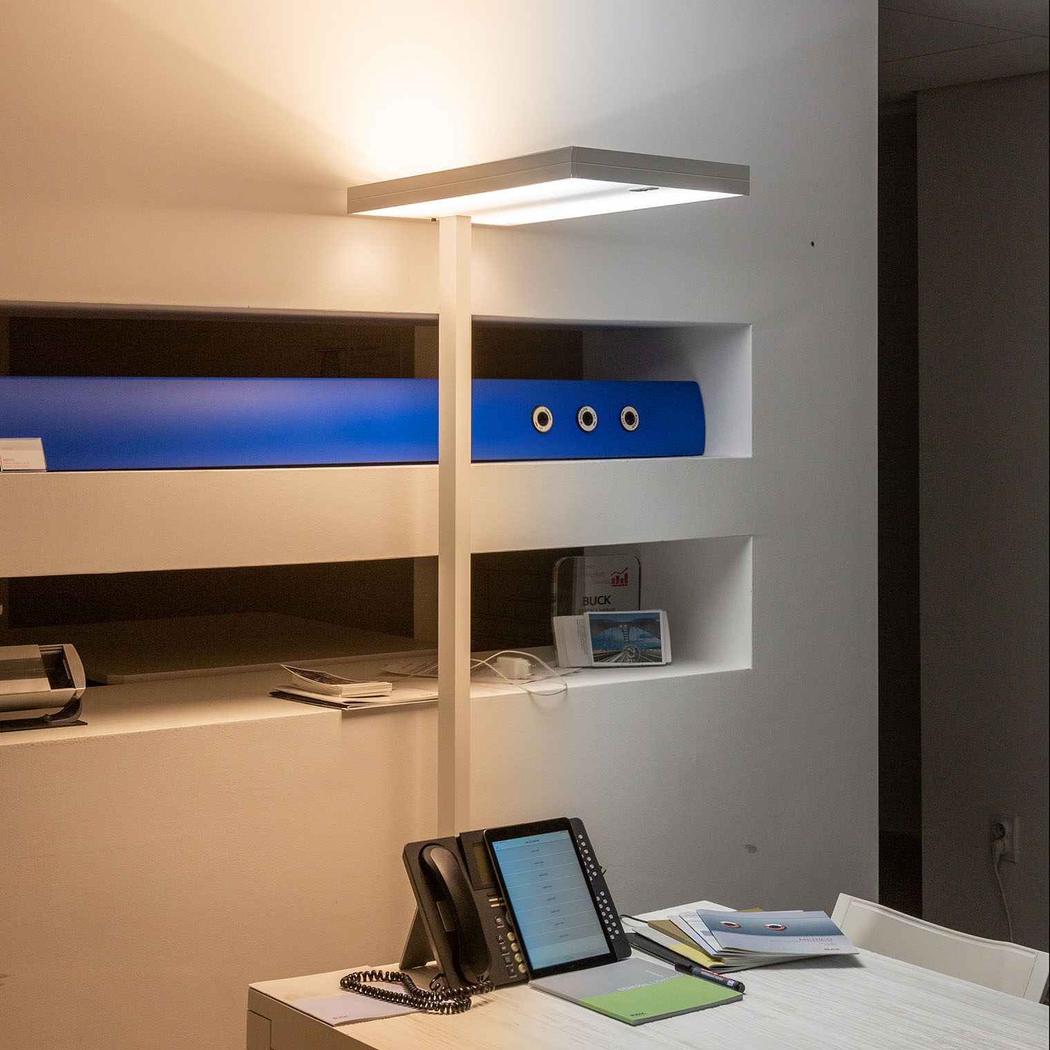GENERAL Free-standing luminaire for direct and indirect illumination of workspaces. Visual comfort ensured with the latest optical and electrical components.