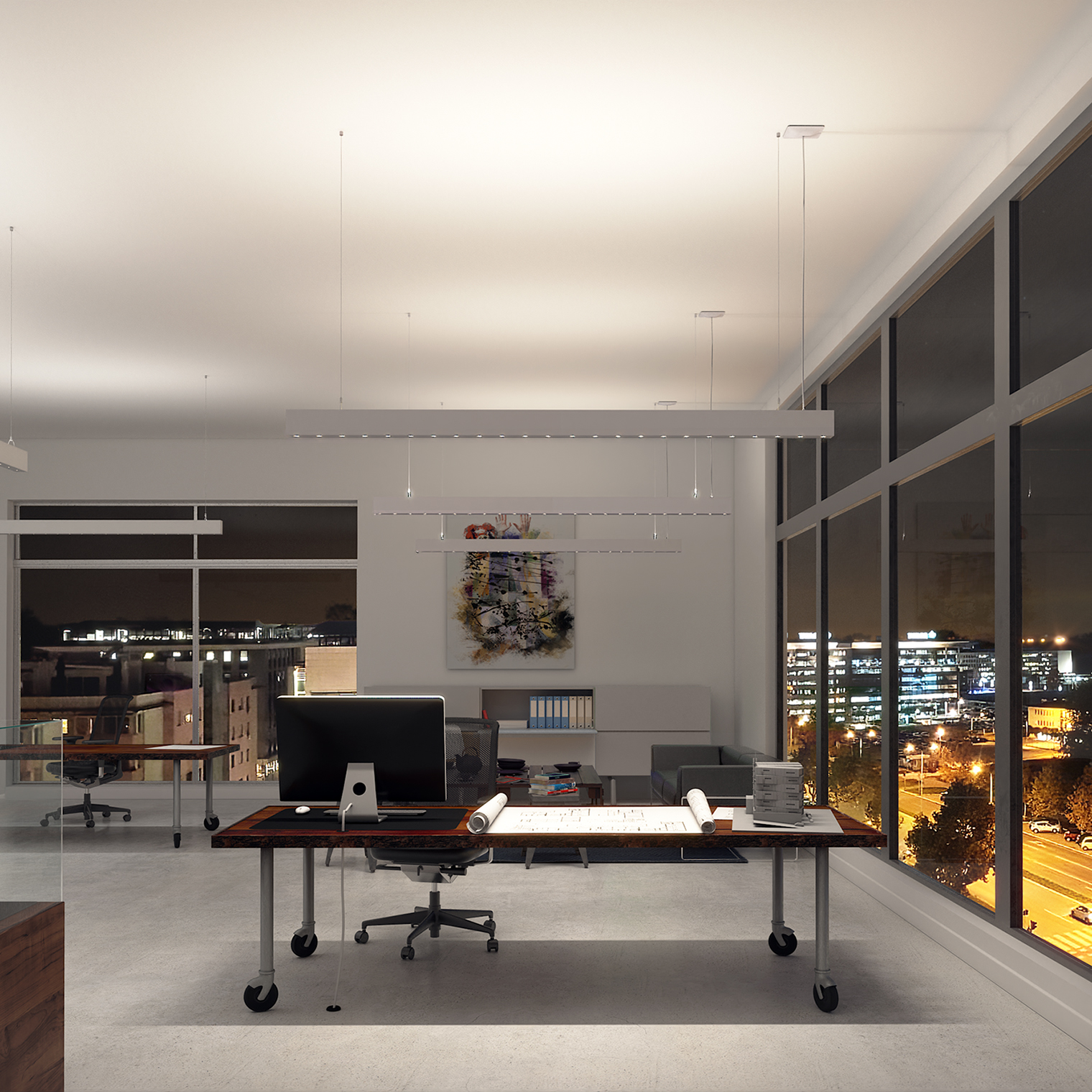 GENERAL High efficiency suspension linear luminaire for direct and indirect high quality illumination of office spaces.