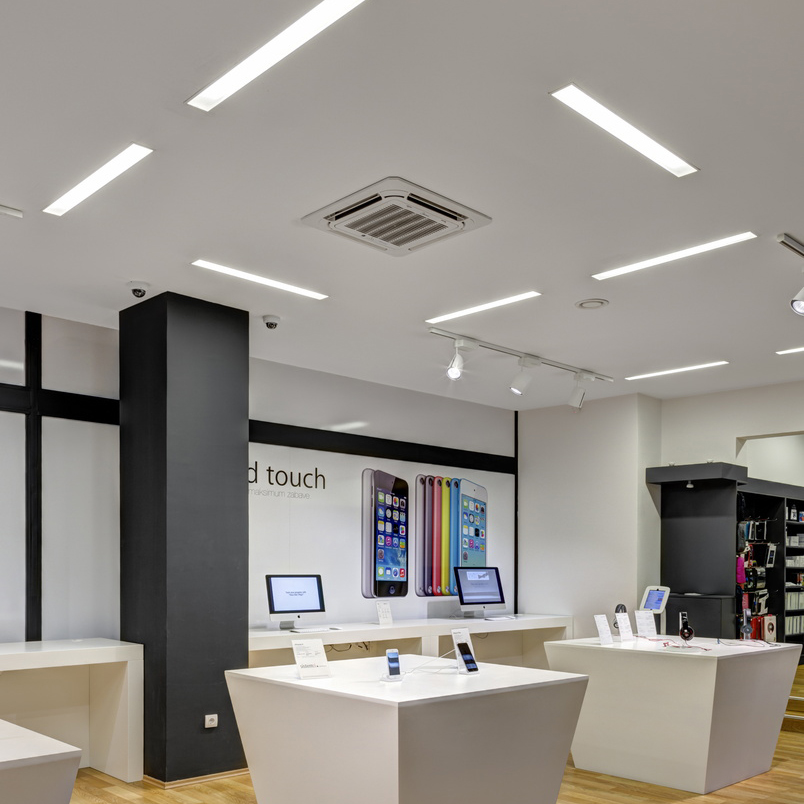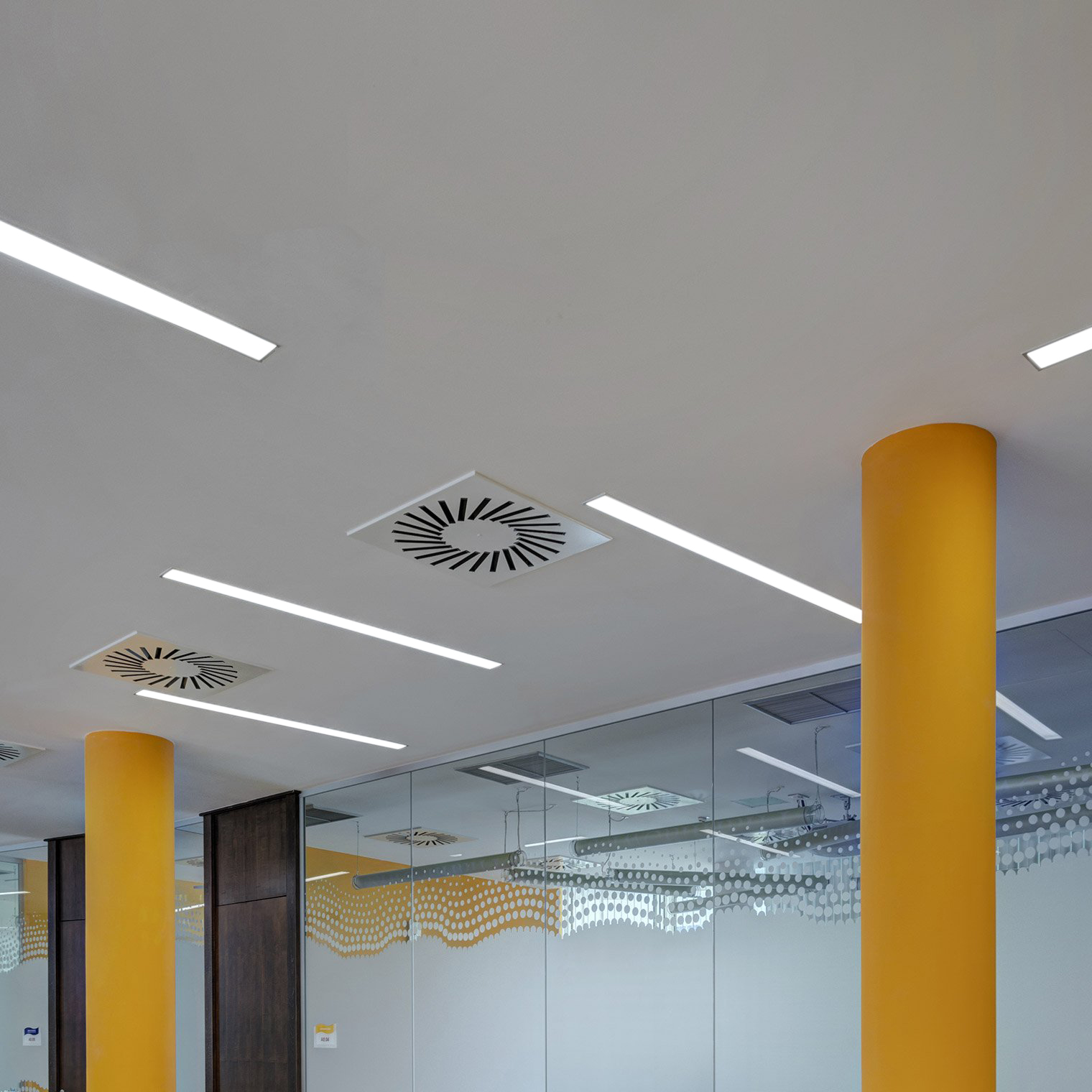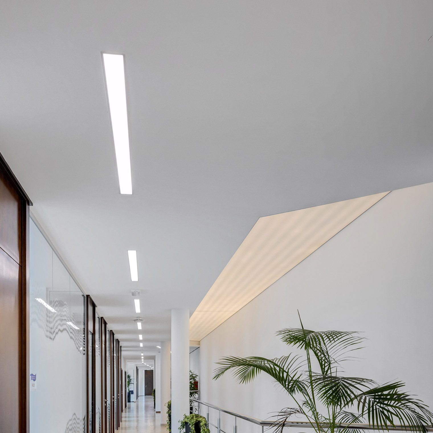 APPLICATION Applicable to monolith suspended ceilings. FEATURES Possibilty to form a long linear shape adjusted to the space, in order to gain optimal light uniformity and aesthetic consistency of the interior.