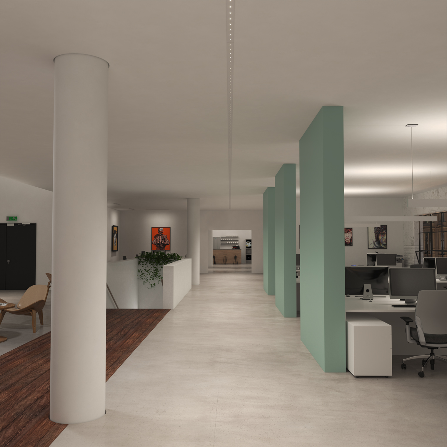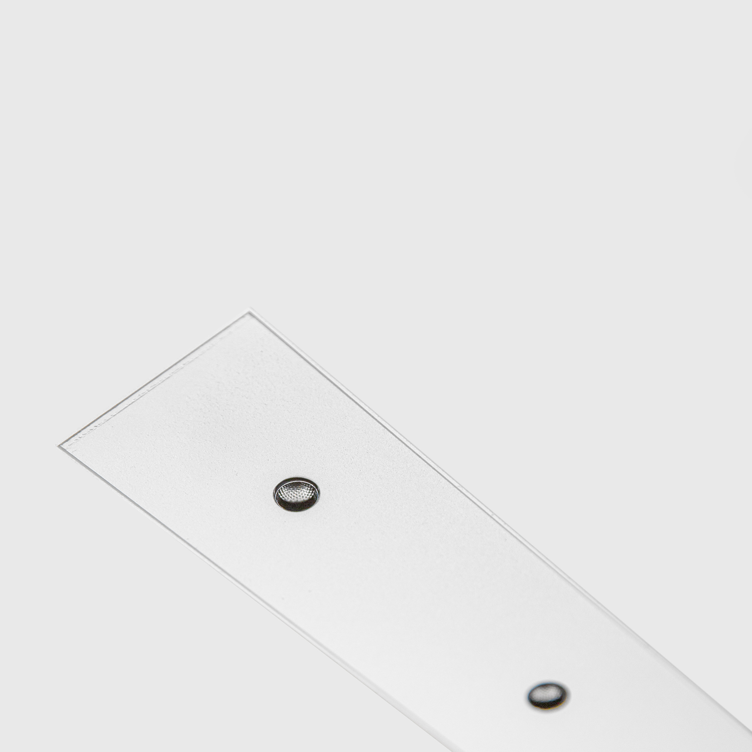 OPTICS Lens made of PMMA, retracted from the bottom surface of the luminaire, emitting light through perforation on the surface. Retraction from the perforation enables invisibility of the light source, providing full visual comfort.