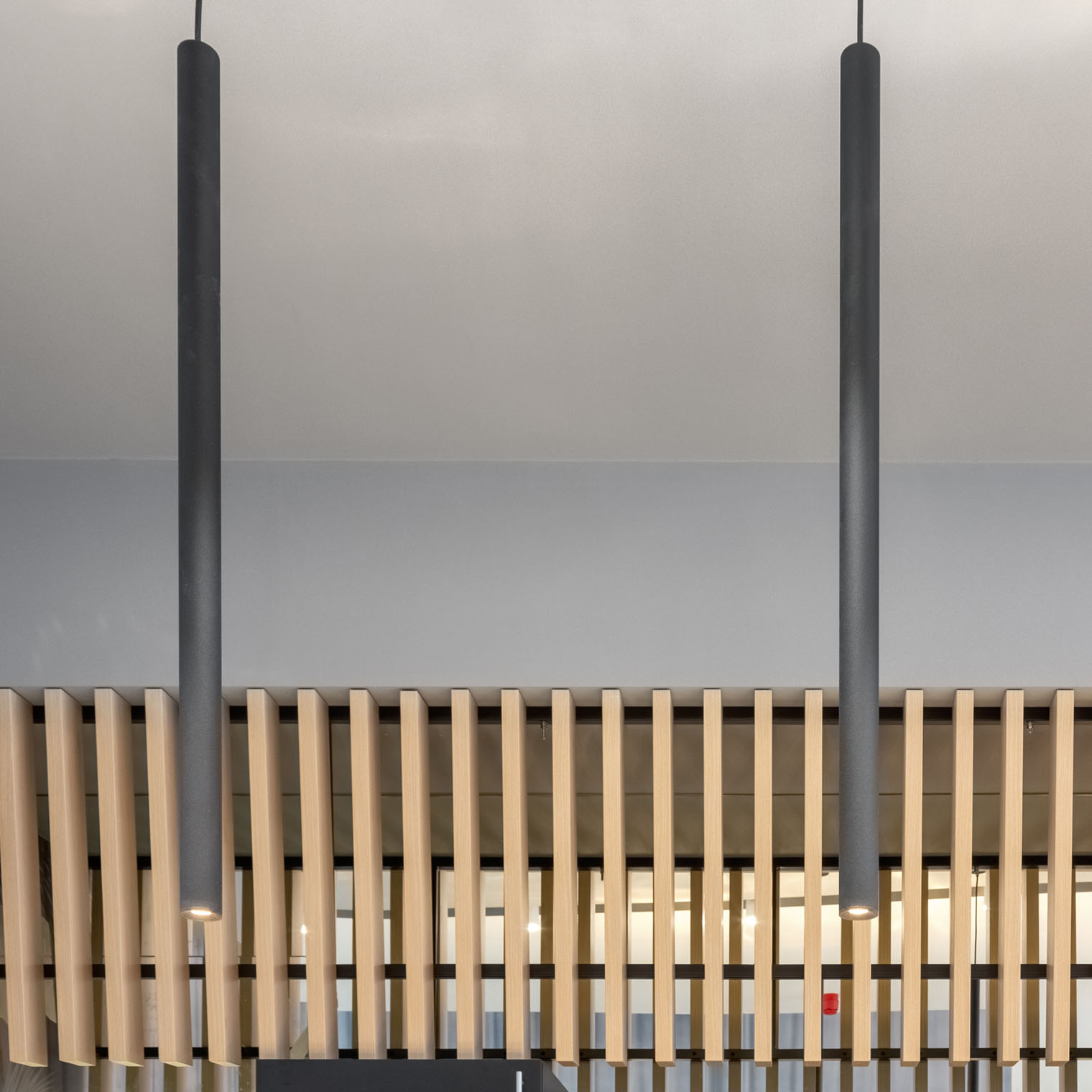 GENERAL High optical and energy efficiency suspended downlighter for accent illumination.