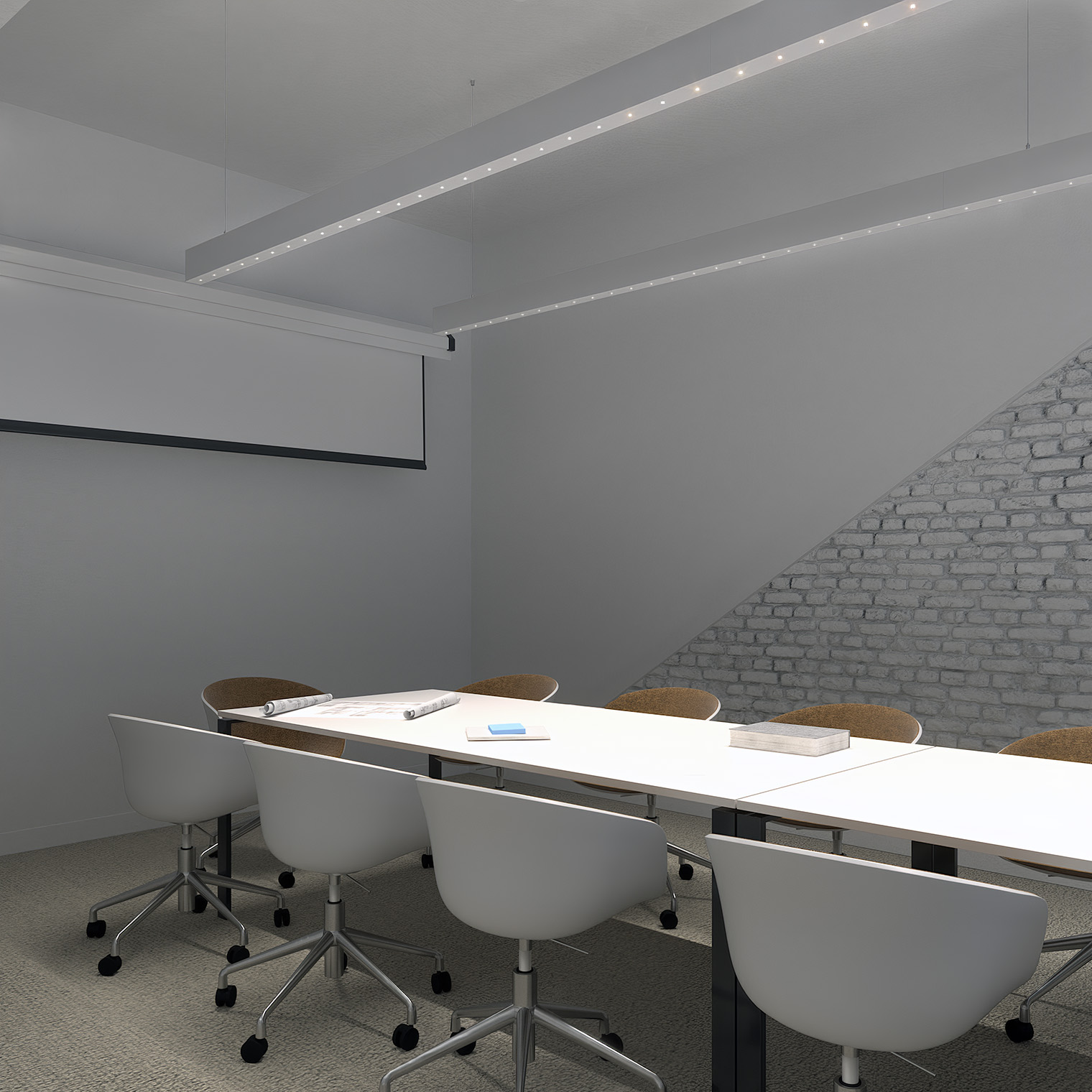 GENERAL High efficiency suspension luminaire for direct illumination of office spaces.