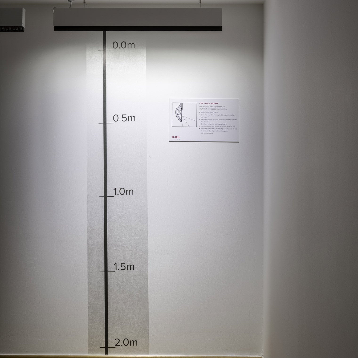 OPTICS Wall washing component is based on reflectors with complex- surface micro- facet technology. The reflectors ensure high uniformity in lighting distribution on plane with characteristic elongation in vertical direction. Precise cut off eliminating glare in adjacent areas.