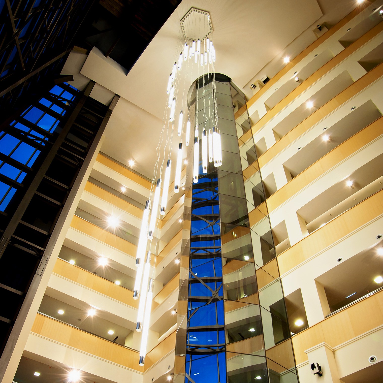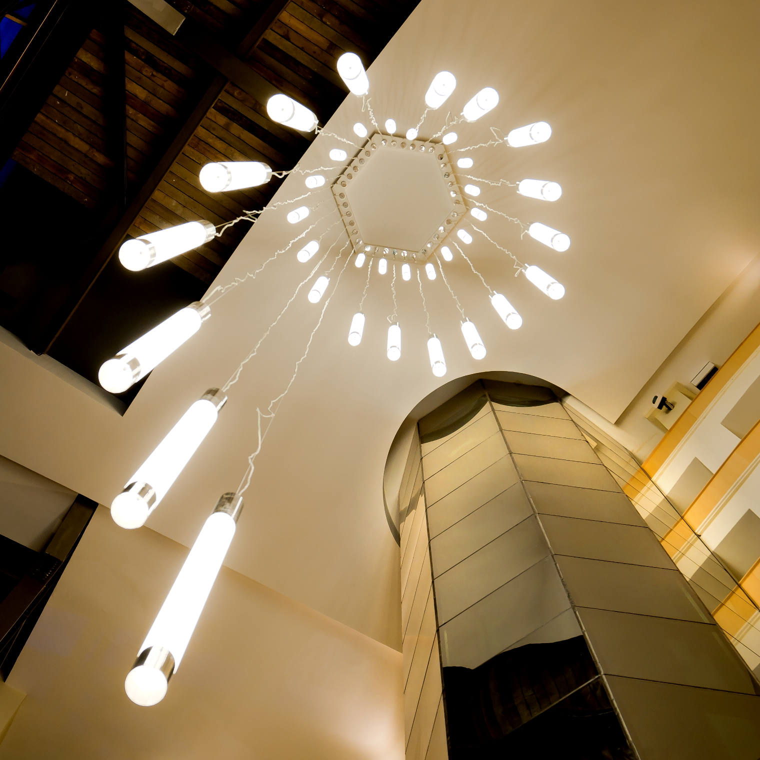 GENERAL Suspension luminaire for general illumination of high spaces.