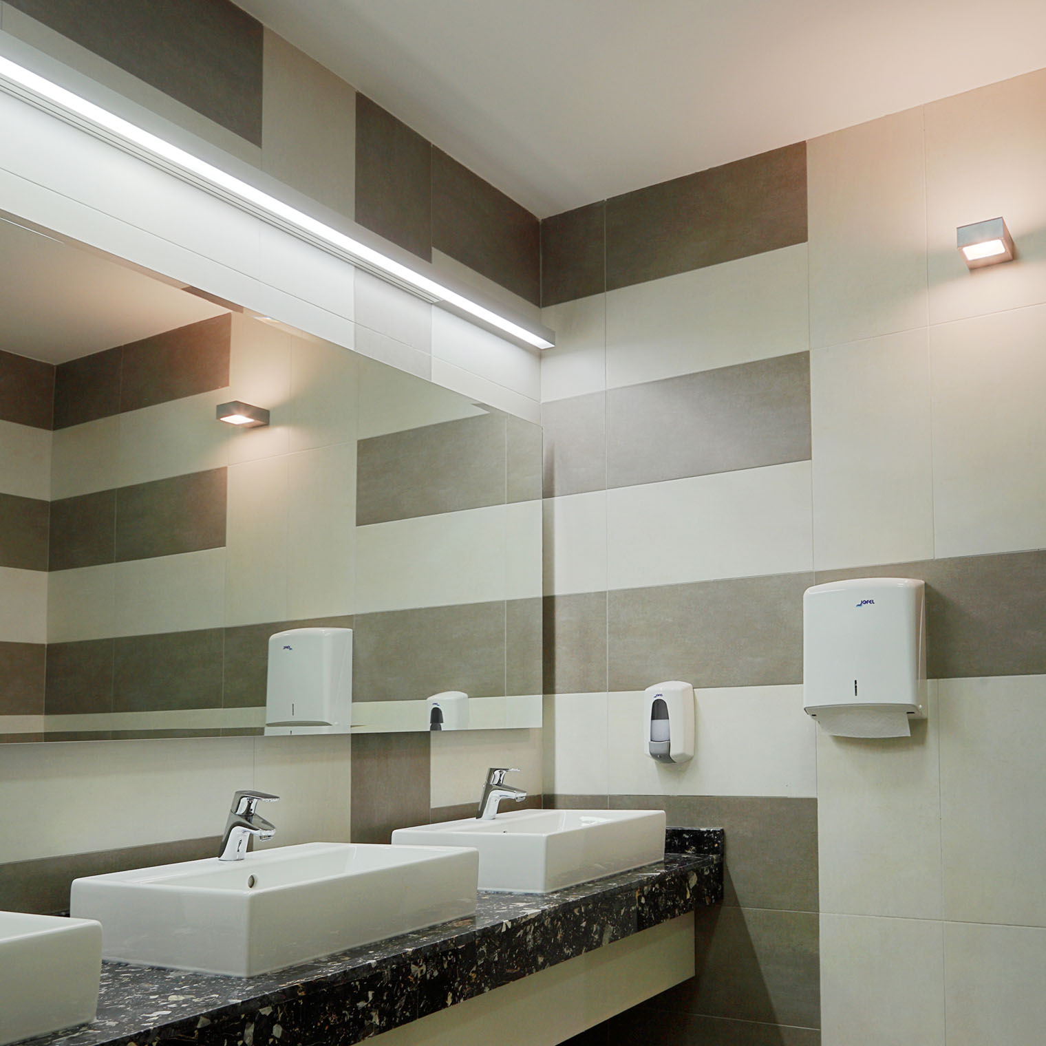 GENERAL Wall mounted luminaire for direct localised illumination, appropriate for installation in humid spaces.